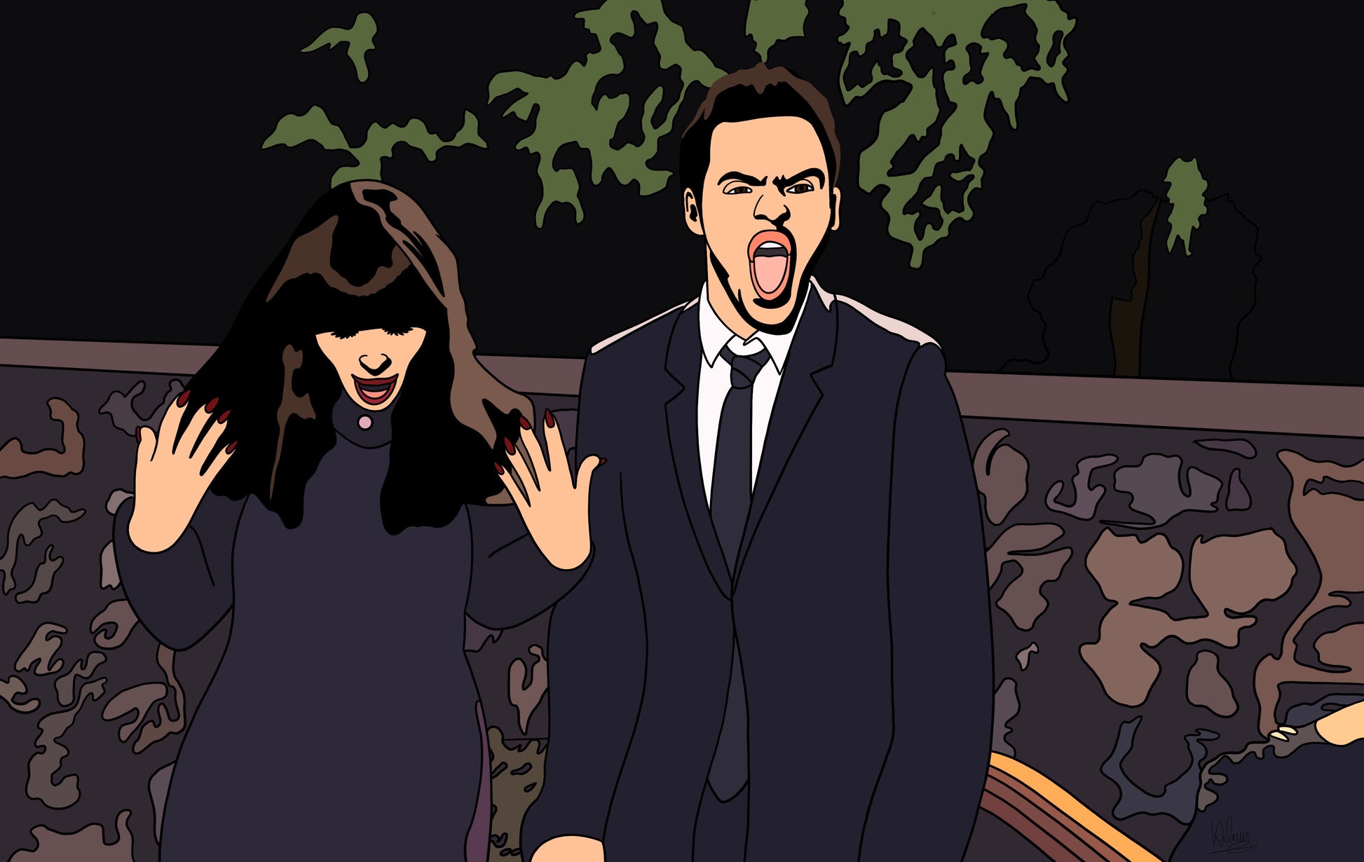 Hand-drawn New Girl Scenes. Matte print in various sizes.